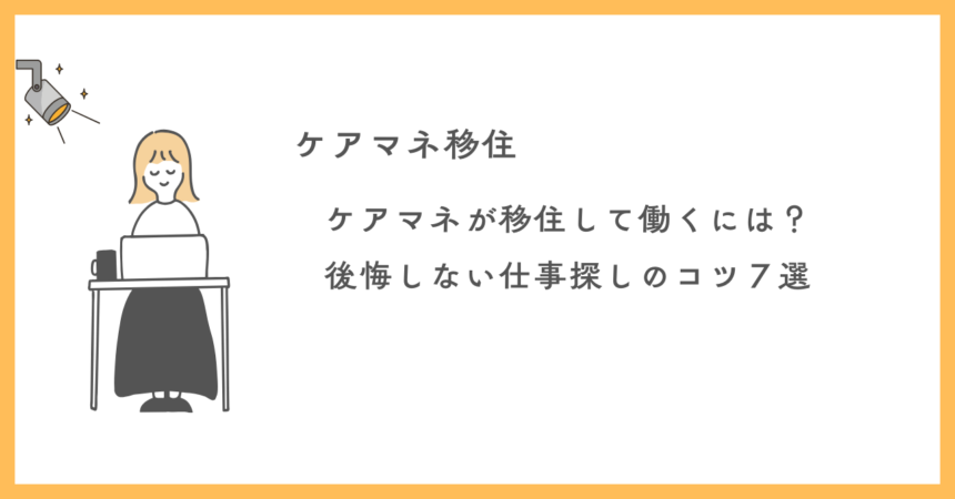 この記事を読むと、ケアマネが県外へ移住する時の仕事の探し方、失敗しない会社選びがわかります。